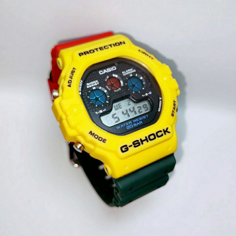 G shock rasta tapak kucing dw5900 kuning hitam biru jam tangan lelaki perempuan.